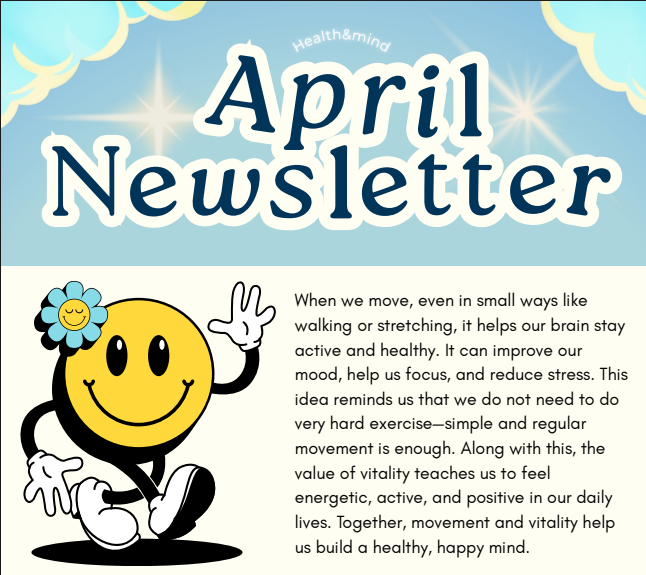 April 2026 : Move for a Healthier Mind March 2026: Cultivating Optimism for Mental Well-being January 2026: New Year, New Hobbies November 2025: Kindness First October 2025: Mental Health Matters September 2025: Self-Care Balance & Recharge August 2025: Building New Relationships July 2025: Practice Altruism & Strengthen Community June 2025: Mindfulness in Nature & Daily Life May 2025: Laughing for Wellness Posts navigation 1 2 … 7 Next 10/62